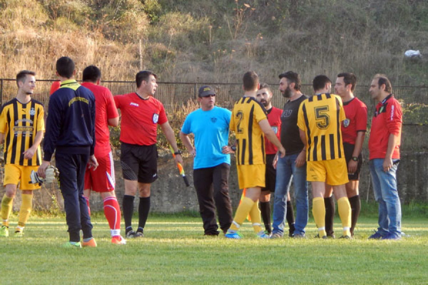 Μετά την παρέλευση 25’ ο διαιτητής και παρά τις προσπάθειες των παραγόντων της Ελεούσας που του έλεγαν ότι ο αρχηγός είναι στο δρόμο προς το γήπεδο έκλεισε το Φ.Α. και μπήκε με τους βοηθούς του στο αυτοκίνητο να φύγουν. Εκεί είχαμε τον αποκλεισμό της εξόδου από τους παράγοντες της Ελεούσας ενώ την ίδια στιγμή ήρθε στο γήπεδο και ο αρχηγός της ομάδας Πότσης ωστόσο ο διαιτητής κ.Μάντζιος ήταν ανένδοτος στο να υπογράψει ο Πότσης το Φ.Α. λέγοντας ότι έχει κλείσει, παρότι ο ίδιος είχε πει στους ανθρώπους της Ελεούσας να πάρουν τηλέφωνο τον παίκτη για να γυρίσει να υπογράψει.