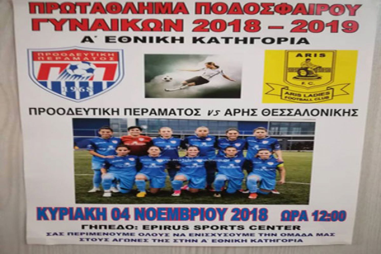 Τον δεύτερο αγώνα της στο πρωτάθλημα της Α’ Εθνικής Γυναικών θα δώσει η Προοδευτική Περάματος που θα υποδεχθεί την Κυριακή 4 Νοεμβρίου (12:00) στο Epirus Football Arena την δυνατή ομάδα του Άρη.