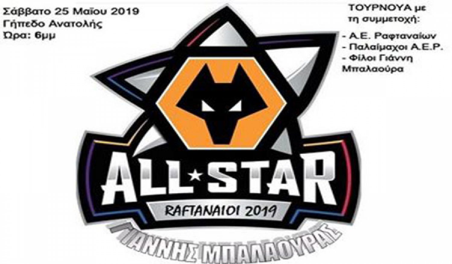 Η Α.Ε.Ραφταναίων ανακοινώνει τη διοργάνωση του ΡΑΦΤΑΝΑΙΟΙ ALL STAR GAME - ΓΙΑΝΝΗΣ ΜΠΑΛΑΟΥΡΑΣ το Σάββατο 25 Μαΐου και ώρα 6μμ στο Γήπεδο Ανατολής.