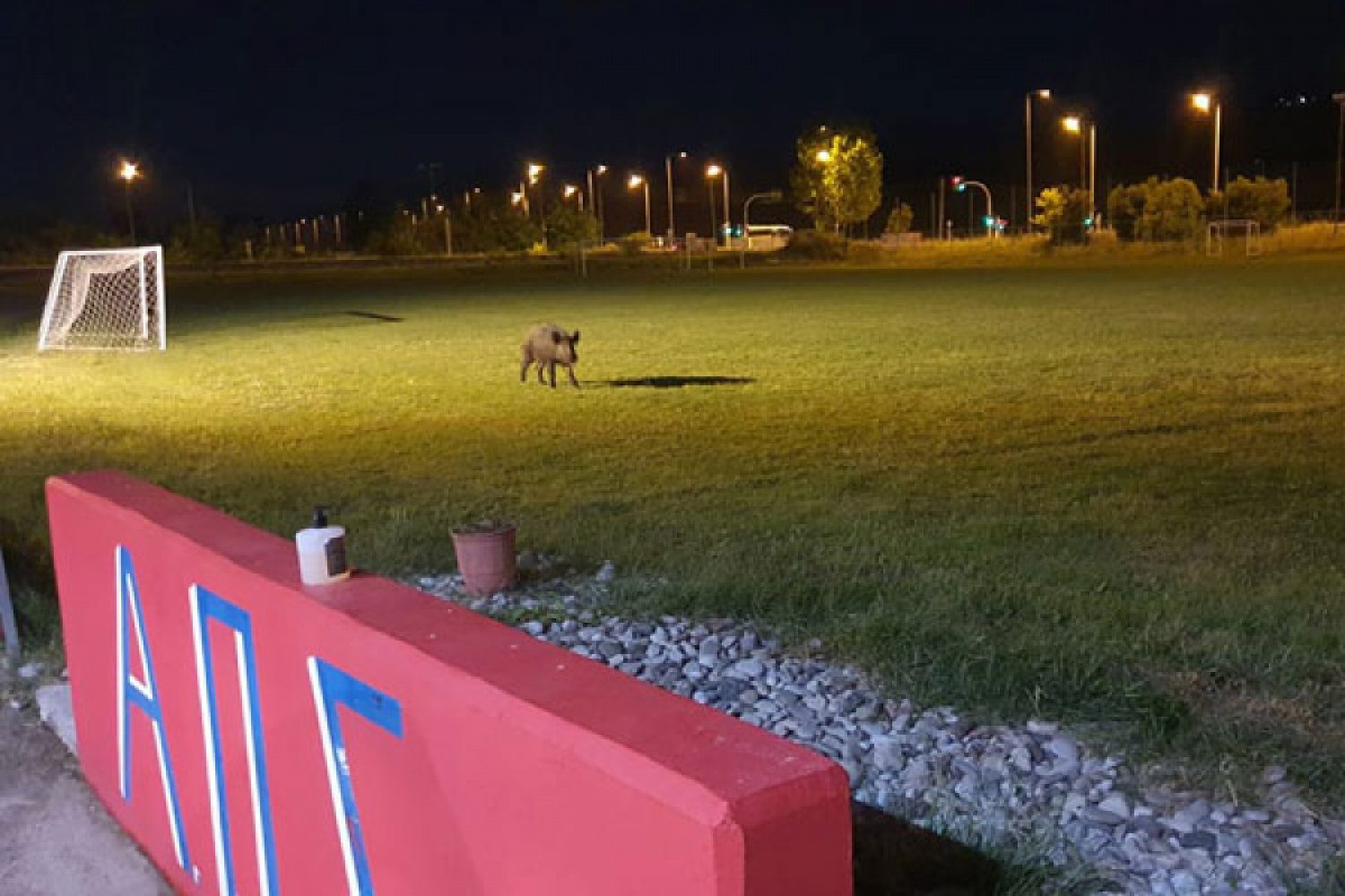 Ο λόγος για ένα αγριογούρουνο, το οποίο κόβει τις βραδινές του βόλτες προς αναζήτηση τροφής, προκαλώντας ωστόσο σοβαρές ζημιές στον αγωνιστικό χώρο των γηπέδων.