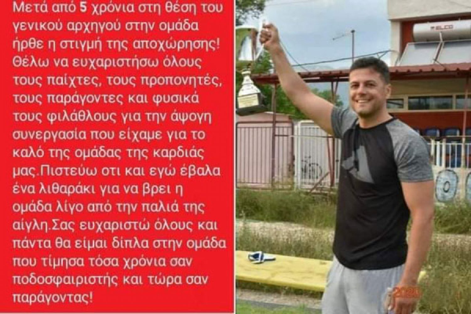 Το ΔΣ της ομάδας τον ευχαριστεί θερμά για την στήριξη του στην ομάδα και τους διαρκείς αγώνες που έδινε ώστε η Θύελλα να κατακτήσει τους στόχους της.
