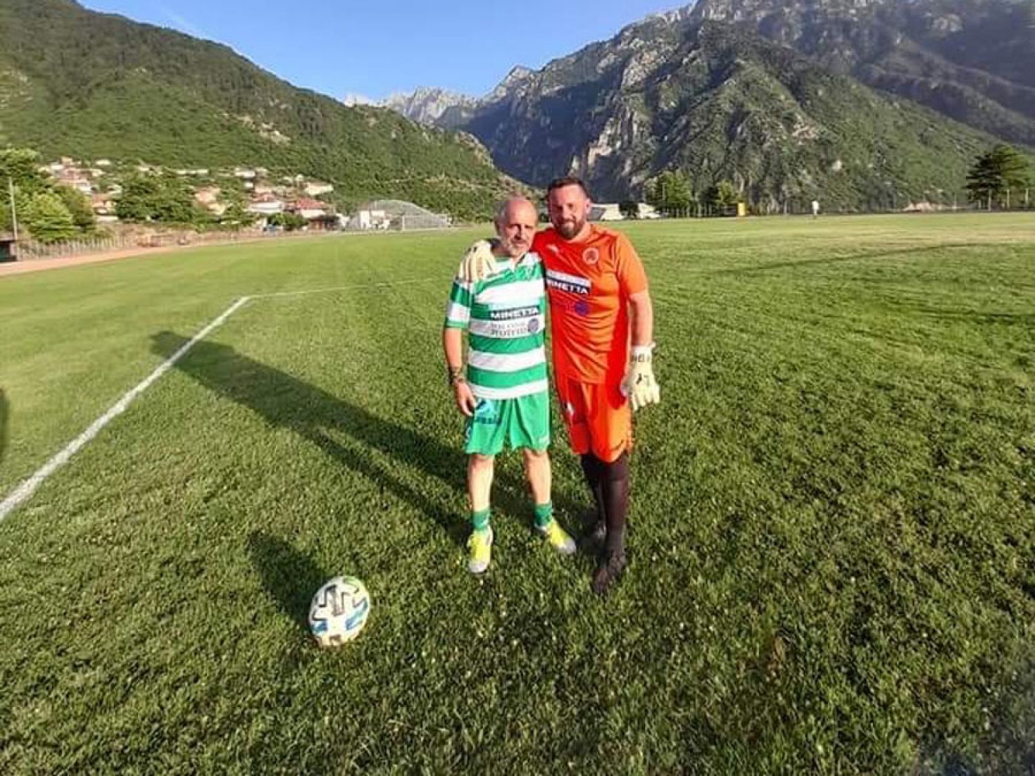 Στη φωτογραφία ο Κώστας Αγόρου (αριστερά) μαζί με τον τερματοφύλακα των Βετεράνων του ΠΑΣ Γιάννινα Κώστα Ντέτσικα