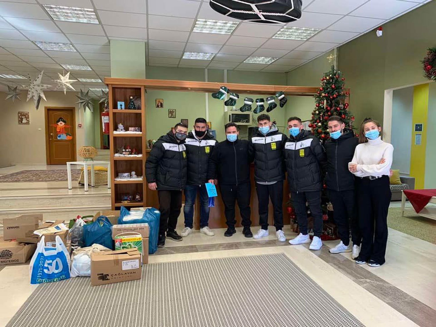 Οι ποδοσφαιριστές Μαρικλέν Μακολλάρι, Χρήστος Σίμος, Γιώργος Τάχιας και Γιώργος Γεωλδάσης συνοδευόμενοι από τον Γραμματέα της ομάδας Αλέξανδρο Καραμάνη και τον πρόεδρο Ανδρέα Πότση παρέδωσαν τα τρόφιμα και τα είδη πρώτης αναγάκης.