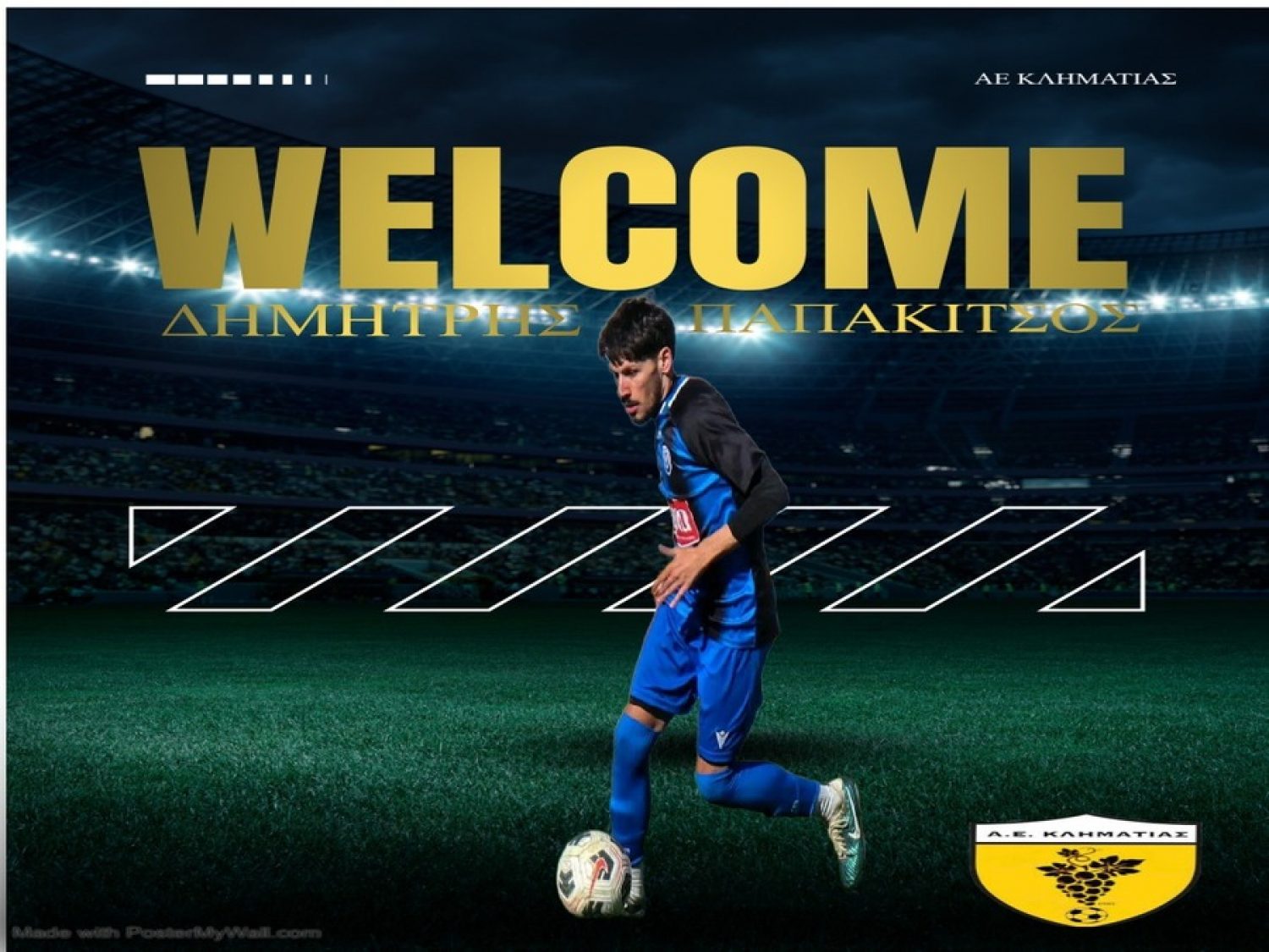 Η διοίκηση της ΑΕ Κληματιάς είναι στην ευχάριστη θέση να ανακοινώσει την έναρξη της συνεργασίας της με τον Δημήτρη Παπακίτσο.