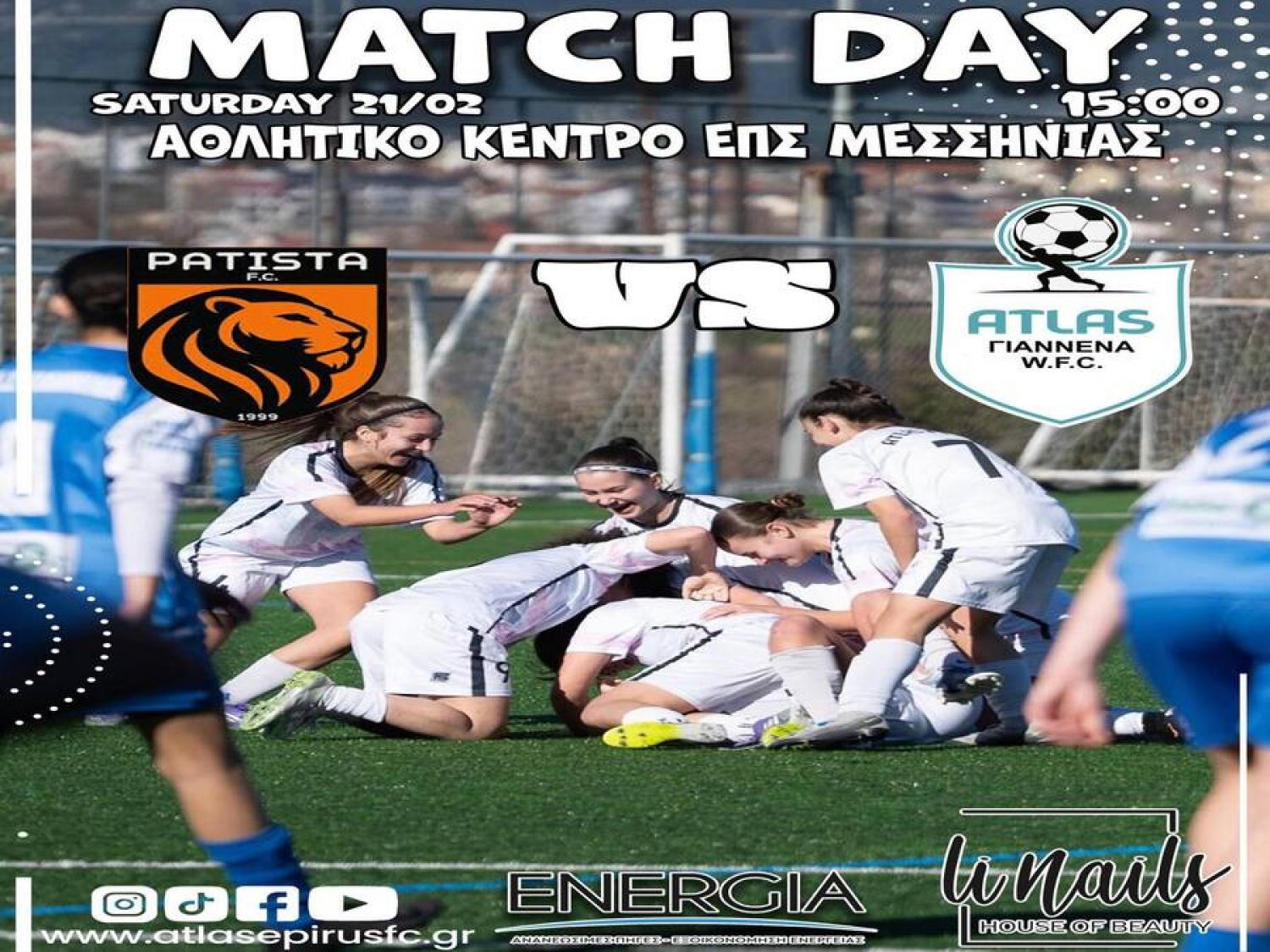 Για την 14η αγωνιστική της Β’ Εθνικής, ο Άτλας αντιμετωπίζει σήμερα, στις 3 μ.μ. την Patista F.C. Το παιχνίδι θα γίνει στο αθλητικό κέντρο της ΕΠΣ Μεσσηνίας.