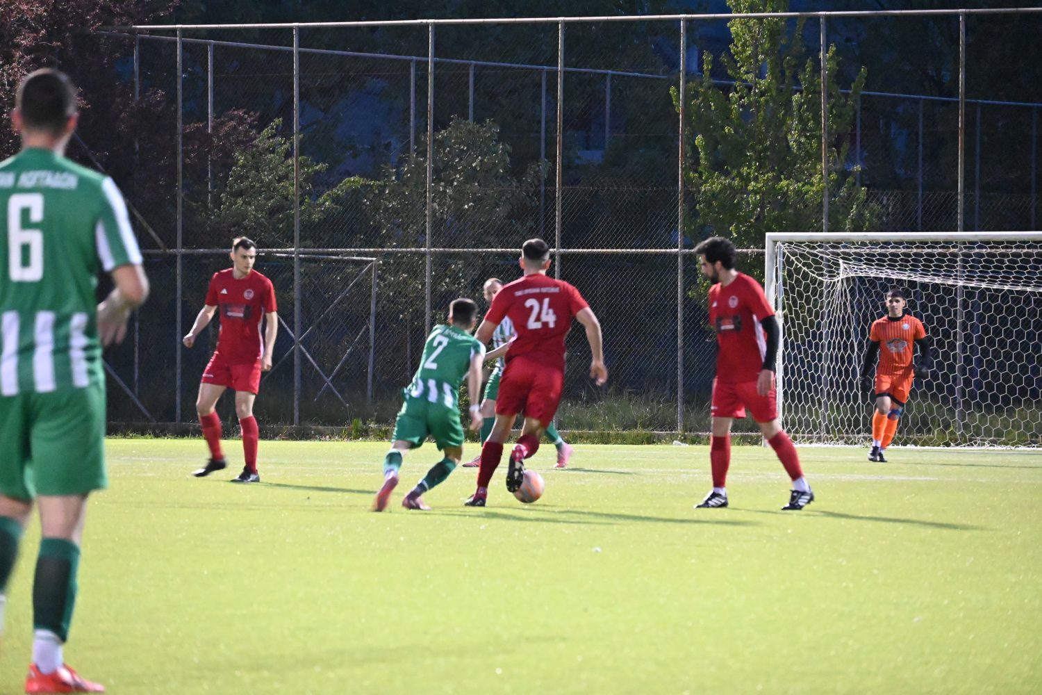 Η πρώτη καλή στιγμή στον αγώνα ήρθε στο 22΄ με την εκτέλεση φάουλ του Κολιούση να περνά λίγο πιο πάνω από την αντίπαλη εστία.