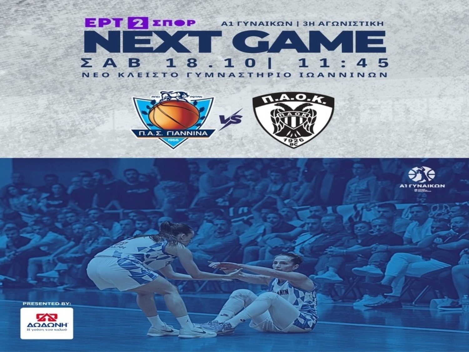 Τηλεοπτική κάλυψη από την ΕΡΤ 2 θα έχει η αναμέτρηση του ΠΑΣ Γιάννινα με τον ΠΑΟΚ για την 3η αγωνιστική της Α1 Γυναικών στο Μπάσκετ, η οποία θα διεξαχθεί το Σάββατο στις 11.45 το πρωί στο Νέο Κλειστό.