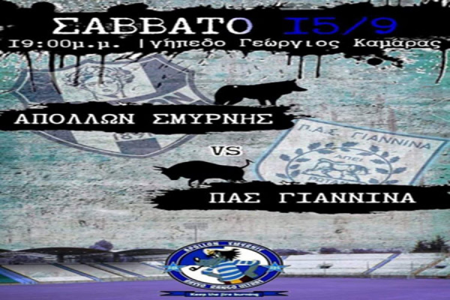 Κάλεσμα από τον σύνδεσμο του Απόλλωνα Σμύρνης Basso Rango Ultras προς του φίλους της ομάδας, αλλά και προς τους οπαδούς του ΠΑΣ Γιάννινα τους οποίους καλούν παρά τα προβλήματα που υπάρχουν με τις εκτός έδρας μετακινήσεις να παρακολουθήσουν μαζί το αυριανό παιχνίδι Απόλλων Σμύρνης-ΠΑΣ Γιάννινα.