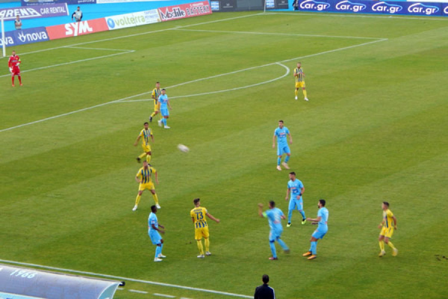 Τέλος του πρώτου μέρους. Ο Παναιτωλικός μετά από ένα μέτριο πρώτο ημίχρονο βρίσκεται μπροστά στο σκορ 0-1 με γκολ του Μάζουρεκ σε ένα κακό χρονικά σημείο για τον ΠΑΣ Γιάννινα, ο οποίος προσπάθησε να αντιδράσει χάνοντας την ευκαιρία με τον Ξύδα.