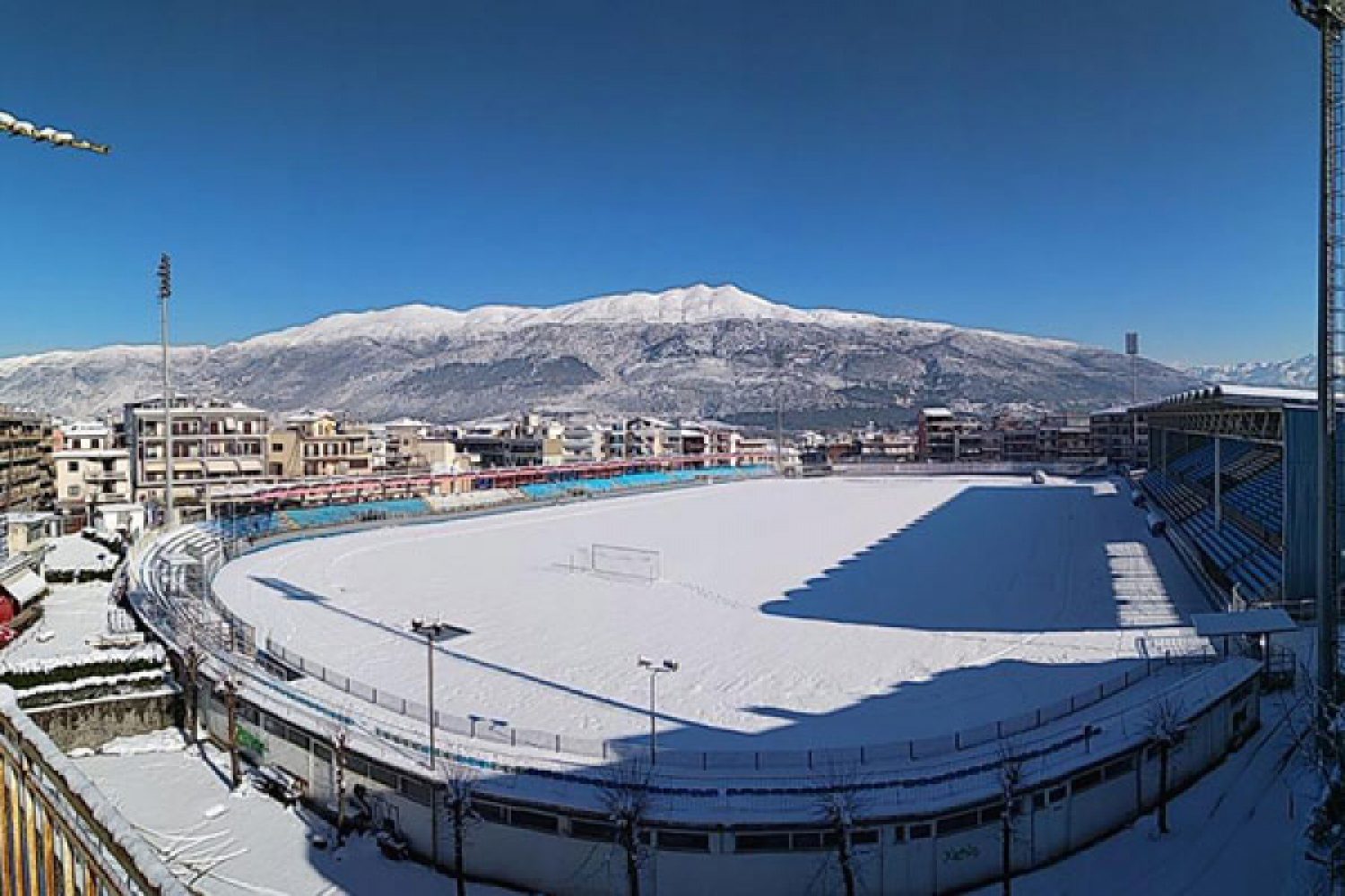 Η «Σοφία» πέρασε με έντονες χιονοπτώσεις από την πόλη των Ιωαννίνων αφήνοντας πολλά προβλήματα στην περιοχή και ένα από αυτό είναι και το γήπεδο των «Ζωσιμάδων» το οποίο έχει καλυφθεί με χιόνι.