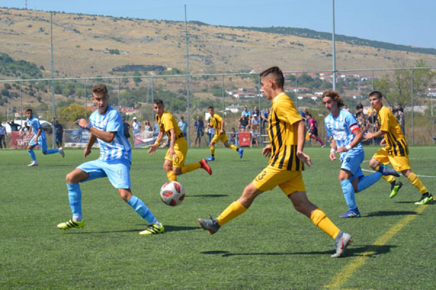 Η ομάδα του Χρήστου Αγγέλη άνοιξε το σκορ στο 36’ με ένα πολύ όμορφο γκολ με ανάποδο ψαλίδι του Δημητρέλου.