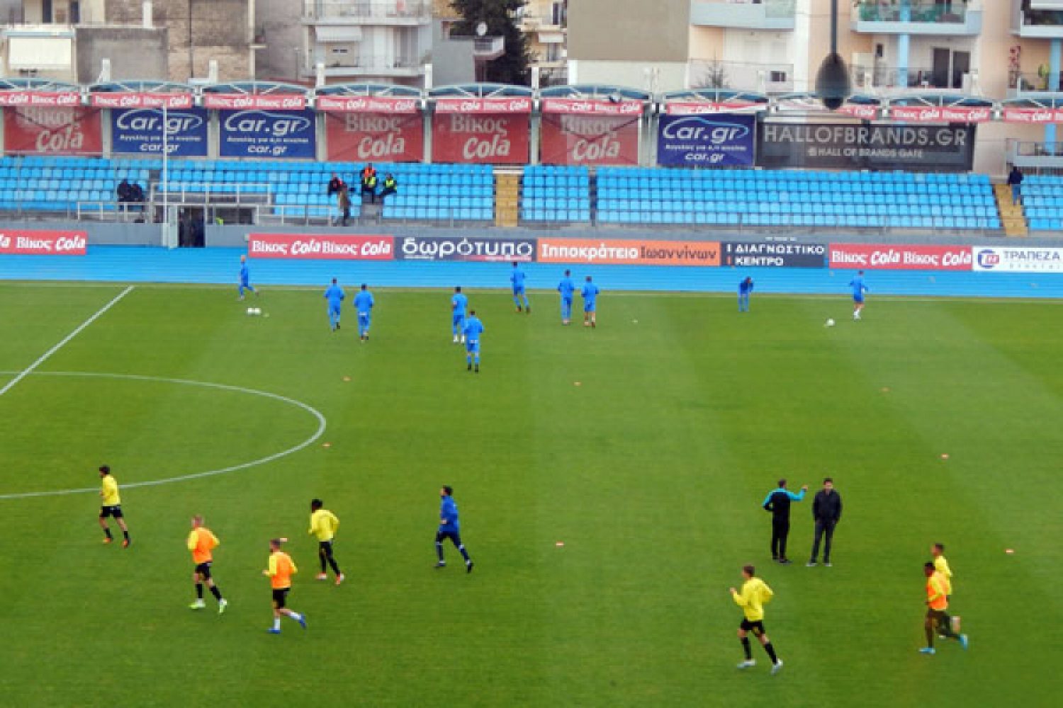 -Έλεγχο στον αγωνιστικό χώρο πραγματοποίησαν λίγο πριν την έναρξη του αγώνα ο προπονητής του ΠΑΣ Αργύρης Γιαννίκης και ο διευθυντής του ποδοσφαιρικού τμήματος Γιώργος Ντάσιος.