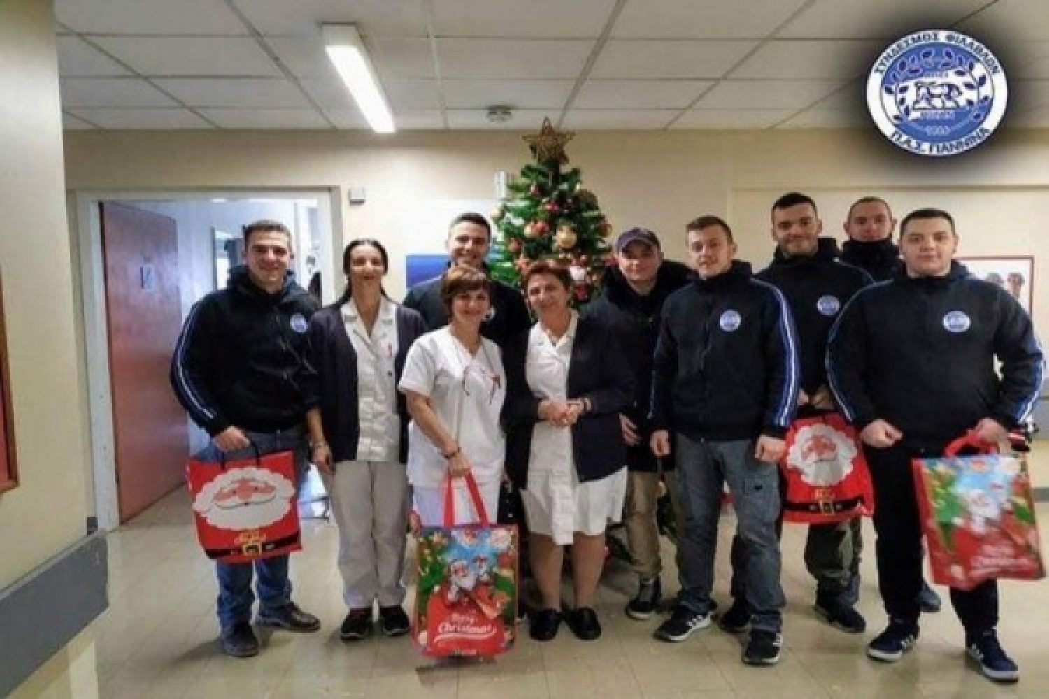 Την πτέρυγα της παιδιατρικής κλινικής του Πανεπιστημιακού Νοσοκομείου Ιωαννίνων επισκέφθηκε το πρωί αντιπροσωπεία του Συνδέσμου Φιλάθλων του ΠΑΣ Γιάννινα, μοιράζοντας δώρα και ευχές στα παιδιά που νοσηλεύονται.