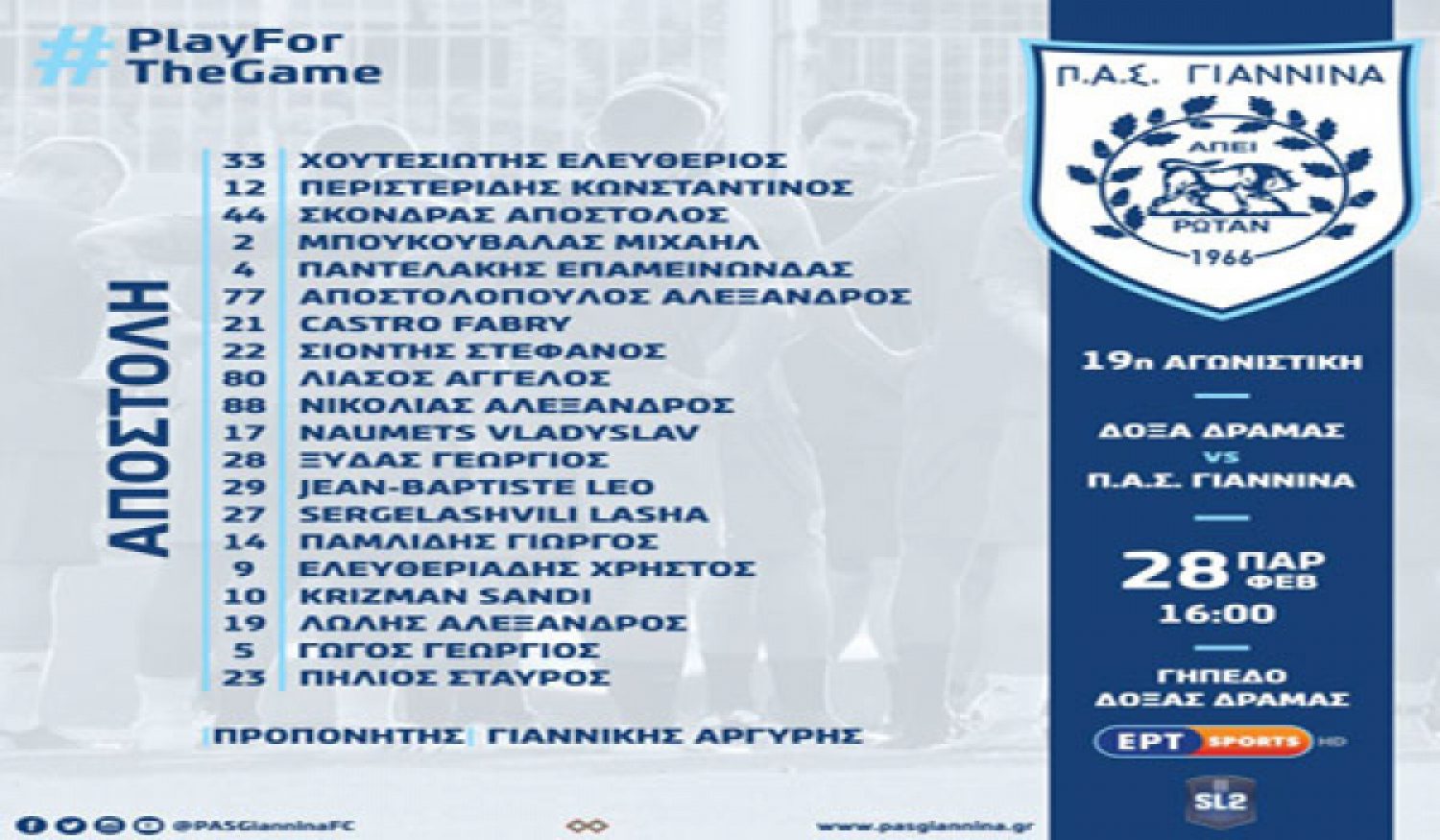 Για τη Δράμα αναχώρησε σήμερα το πρωί ο ΠΑΣ Γιάννινα όπου αύριο στις 16:00 θα αντιμετωπίσει τη Δόξα στα πλαίσια της 19ης αγωνιστικής του πρωταθλήματος της Super League 2.