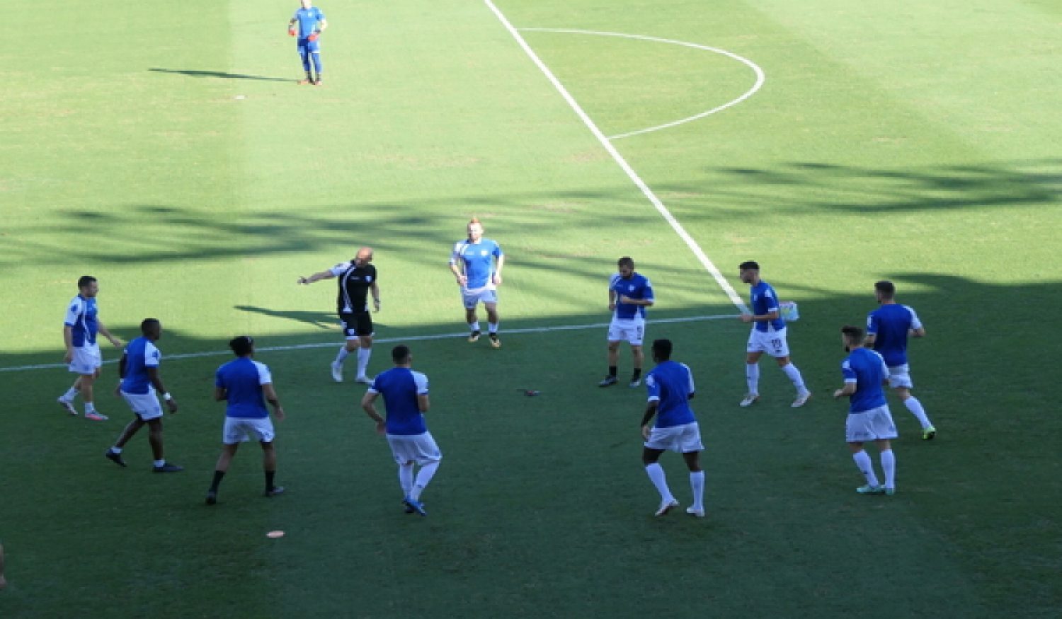 - Πρώτος για ζέσταμα μπήκε στο γήπεδο ο ΠΑΣ Γιάννινα και συγκεκριμένα το νέο μεταγραφικό απόκτημα Εραμούσμπε με τον γυμναστή Ντουρουντό.