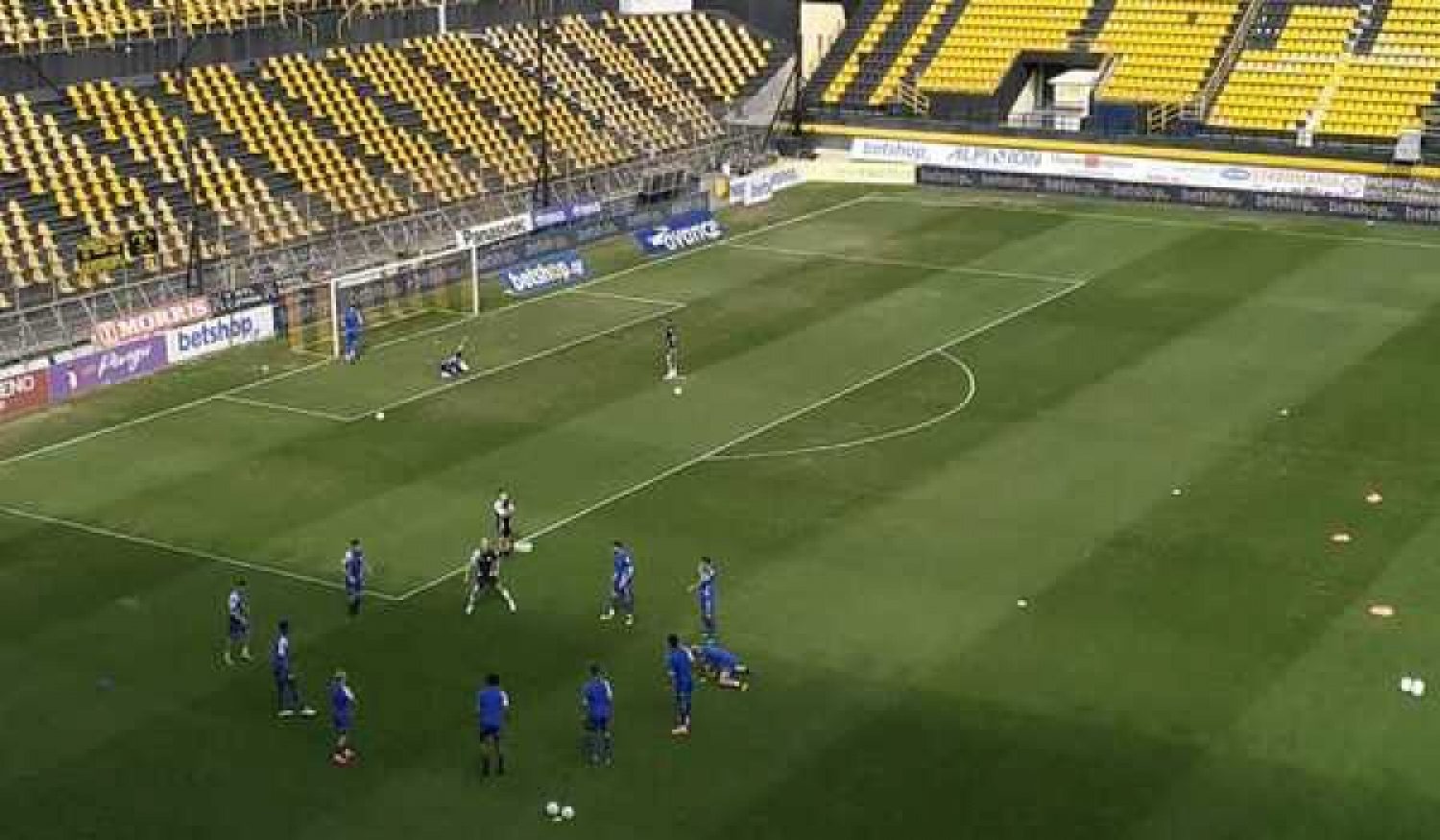 Με τις νέες του μπλε εμφανίσεις παρατάχθηκε ο ΠΑΣ Γιάννινα. Περιβραχιόνιο φοράει ο Γιαννιώτης Στέφανος Σιόντης, ενώ αρχηγός του Άρη είναι ο Δεληζήσης.
