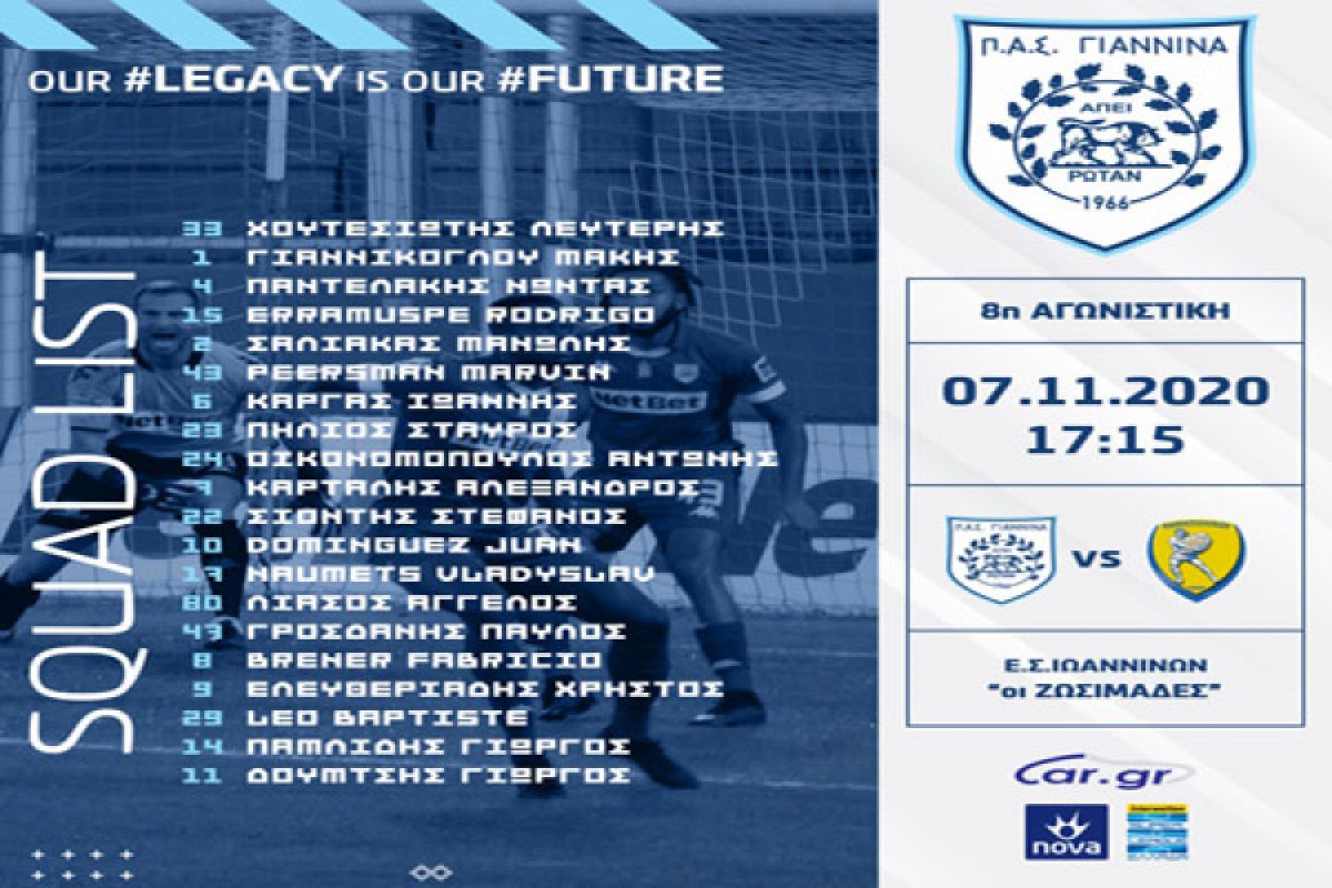 Χωρίς τους Κάστρο και Κρίζμαν στην αποστολή θα υποδεχτεί ο ΠΑΣ Γιάννινα τον Παναιτωλικό στην αυριανή (17:15) αναμέτρηση των δύο ομάδων στο "Ζωσιμάδες" για την 8η αγωνιστική της Super League.