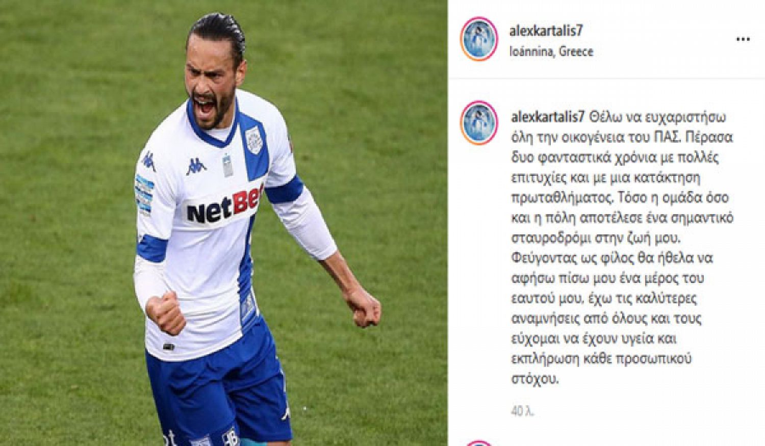 Στον Ατρόμητο θα αγωνίζεται από τη νέα χρονιά ο Αλέξανδρος Καρτάλης, με τον πρώην πλέον παίκτη του ΠΑΣ Γιάννινα να ευχαριστεί μέσω instagram την ομάδα και τους φιλάθλους λέγοντας ότι ήταν ένα σημαντικό σταυροδρόμι στην ζωή του, τονίζοντας παράλληλα ότι φεύγει σαν φίλος αφήνοντας πίσω του ένα μέρος του εαυτού του.