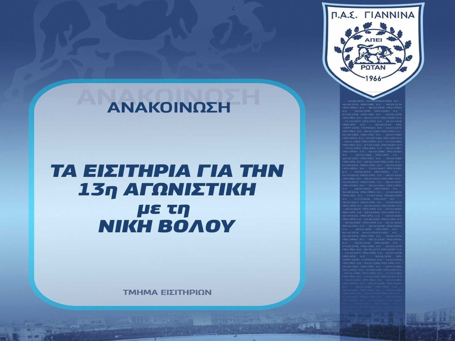 Η Π.Α.Ε. Π.Α.Σ. ΓΙΑΝΝΙΝΑ 1966 ενημερώνει το φίλαθλο κοινό ότι για την εξαιρετικά κρίσιμη αναμέτρηση της 13ης αγωνιστικής απέναντι στη Νίκη Βόλου – έναν ακόμη τελικό σε αυτή τη μεγάλη, συλλογική μάχη – οι τιμές των εισιτηρίων ορίζονται ως εξής: