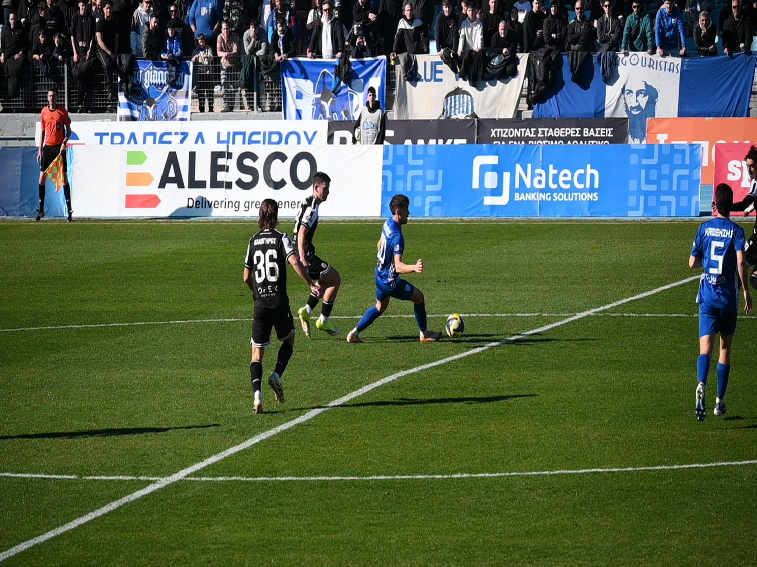 Ο Πολυκράτης με βαθιά μπαλιά βρήκε τον Ραιχανί, εκείνος βγήκε στην πλάτη της άμυνας από αριστερά, έσπασε τη μπάλα στον Κοσίδη εκείνος έκανε το πλασέ, ο Βρακάς απέκρουσε και στην επαναφορά ο Γκιτέρσος ισοφάρισε σε 1-1